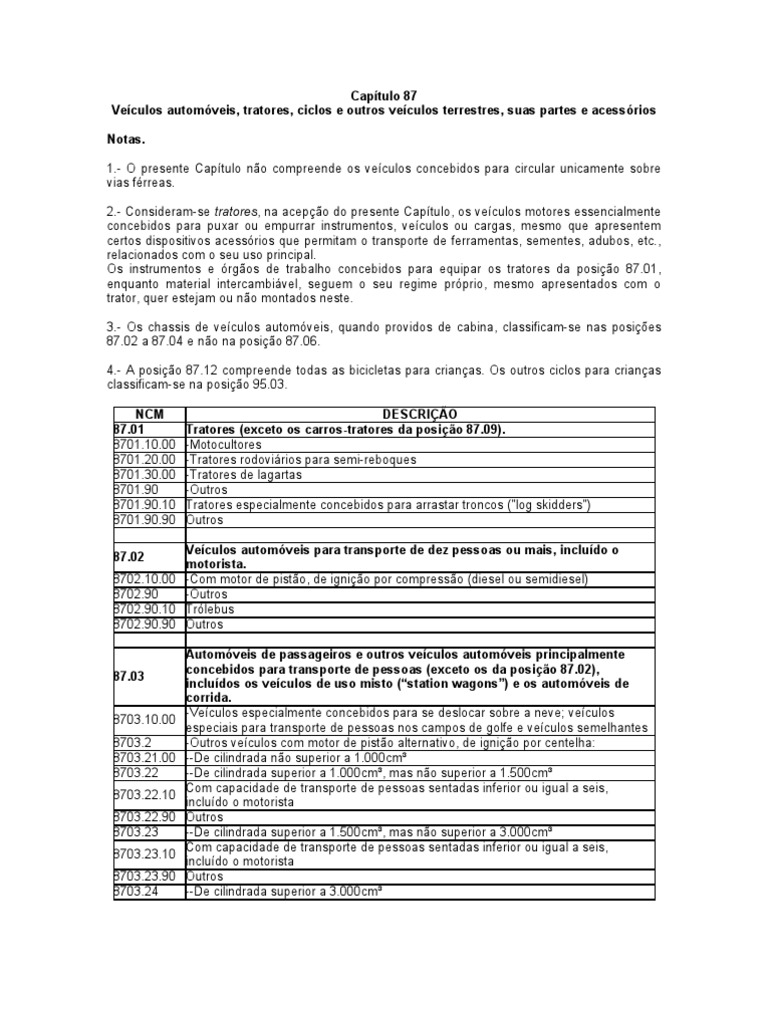 87.01 Tratores (exceto os carros-tratores da posição 87.09).