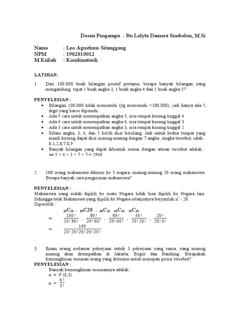 2. 100 orang mahasiswa dikirim ke 5 negara, masing-masing 20 orang mahasiswa.