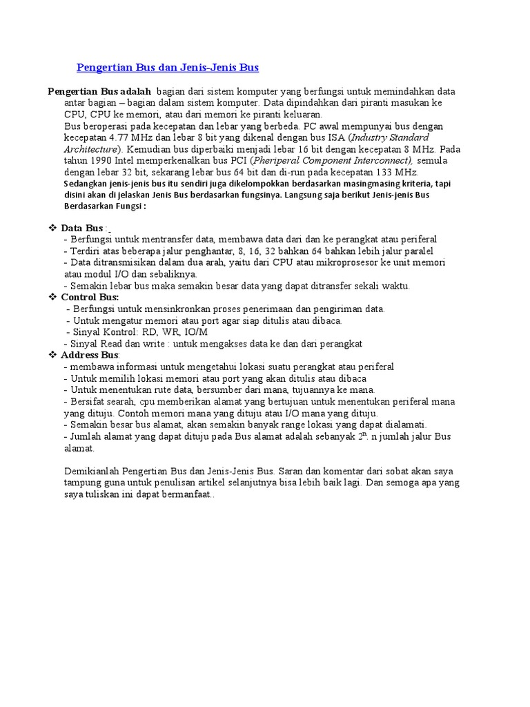Demikianlah Pengertian Bus dan Jenis-Jenis Bus. Saran dan komentar dari sobat akan saya