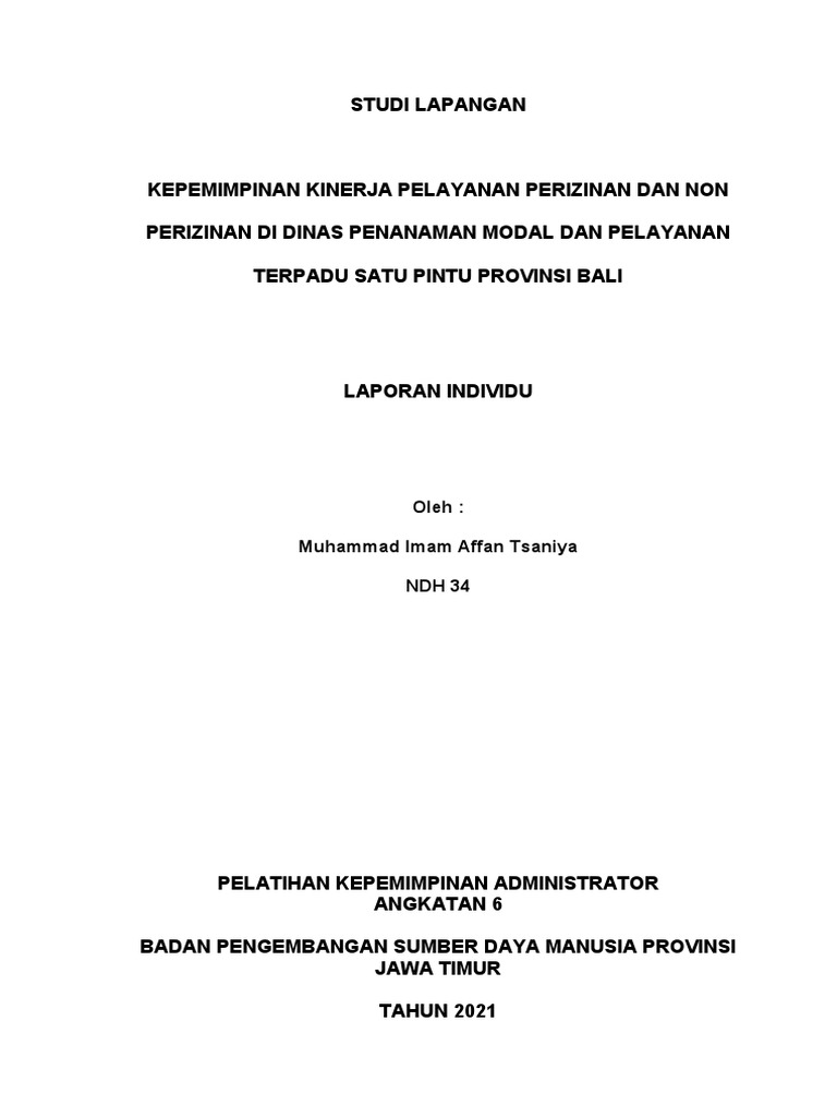 KEPEMIMPINAN KINERJA PELAYANAN PERIZINAN DAN NON