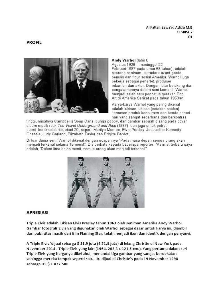 adalah, 'Dalam lima belas menit, semua orang akan menjadi terkenal'".