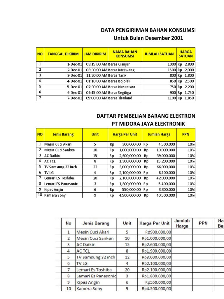 DAFTAR PEMBELIAN BARANG ELEKTRONIK