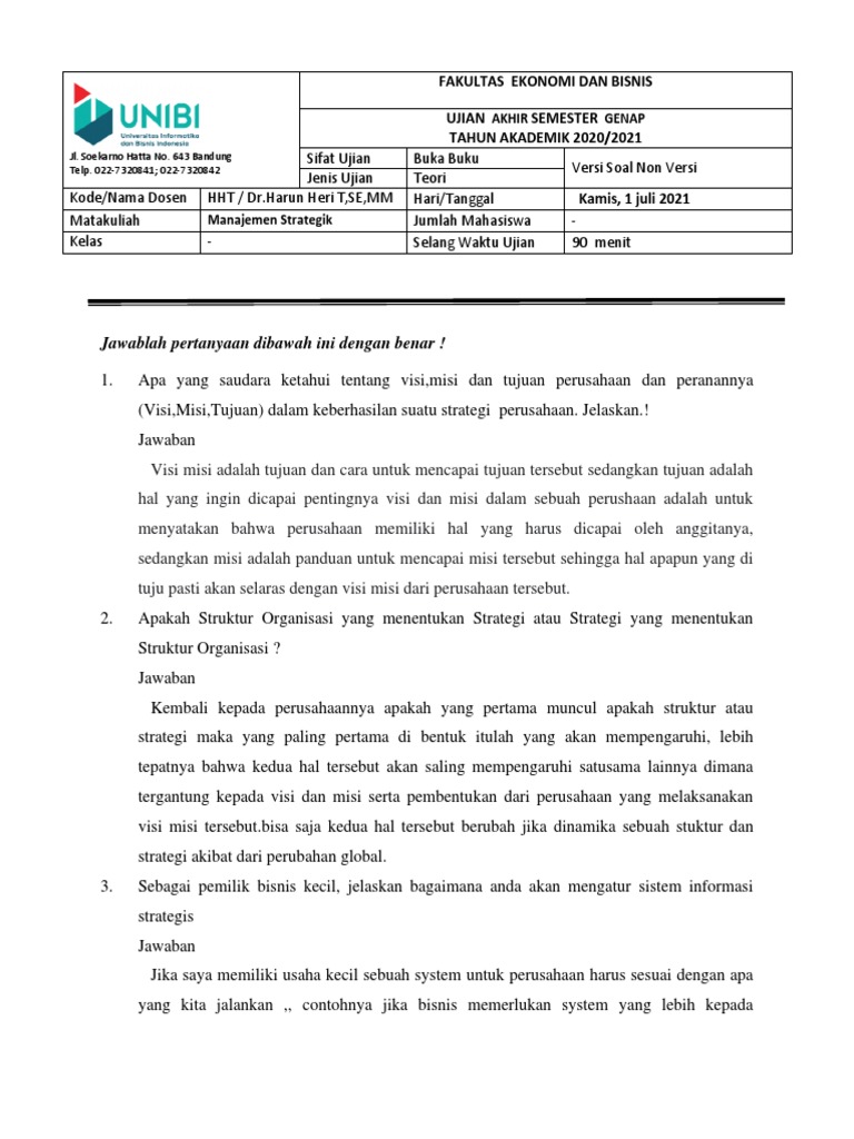 Jl. Soekarno Hatta No. 643 Bandung Sifat Ujian Buka Buku