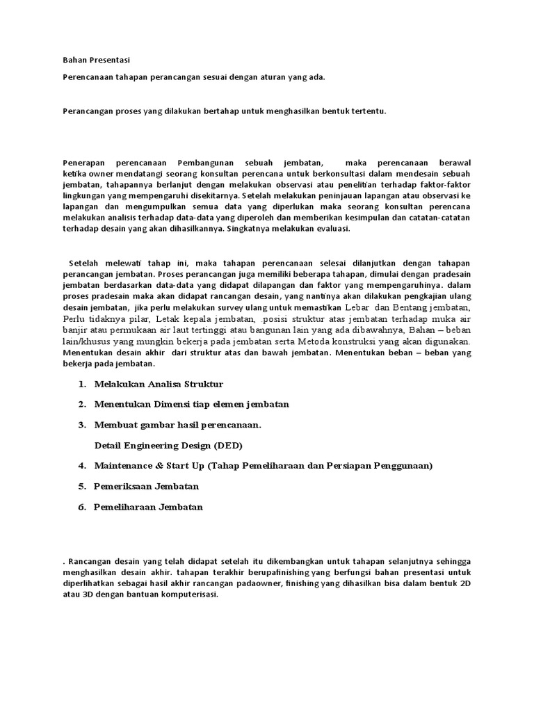 perancangan jembatan. Proses perancangan juga memiliki beberapa tahapan, dimulai dengan pradesain