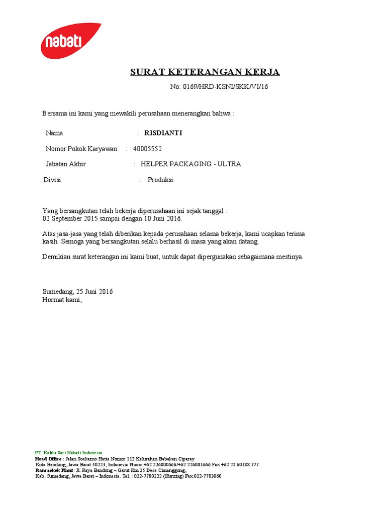 SURAT KETERANGAN KERJA