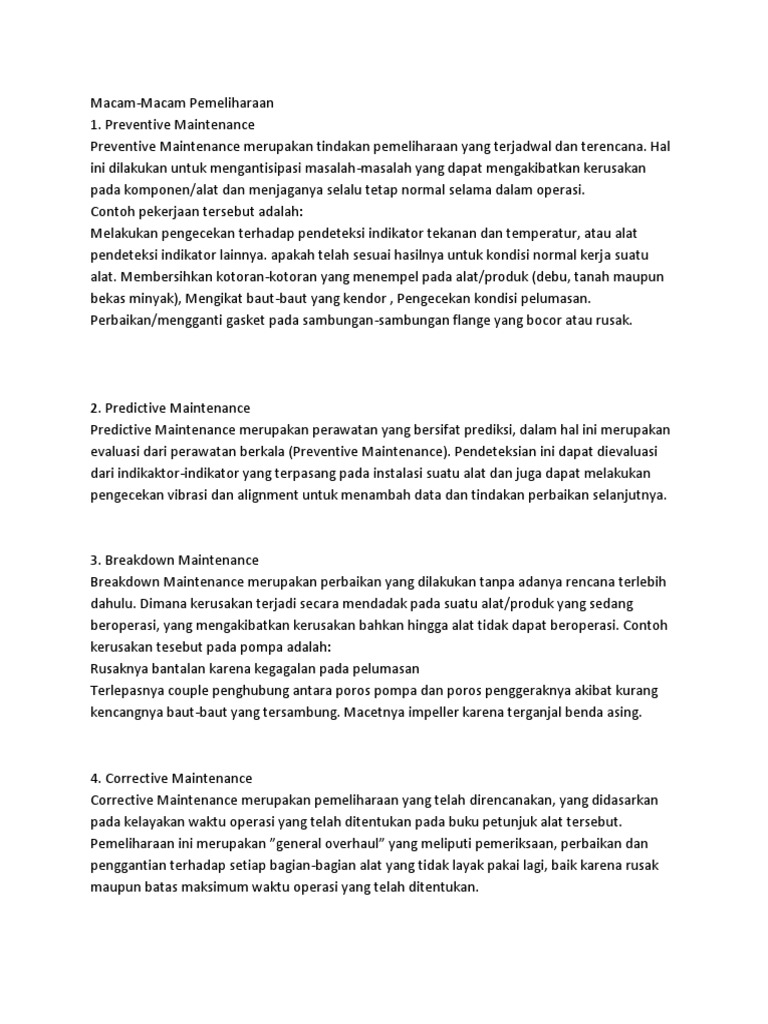 Macam-Macam Pemeliharaan
