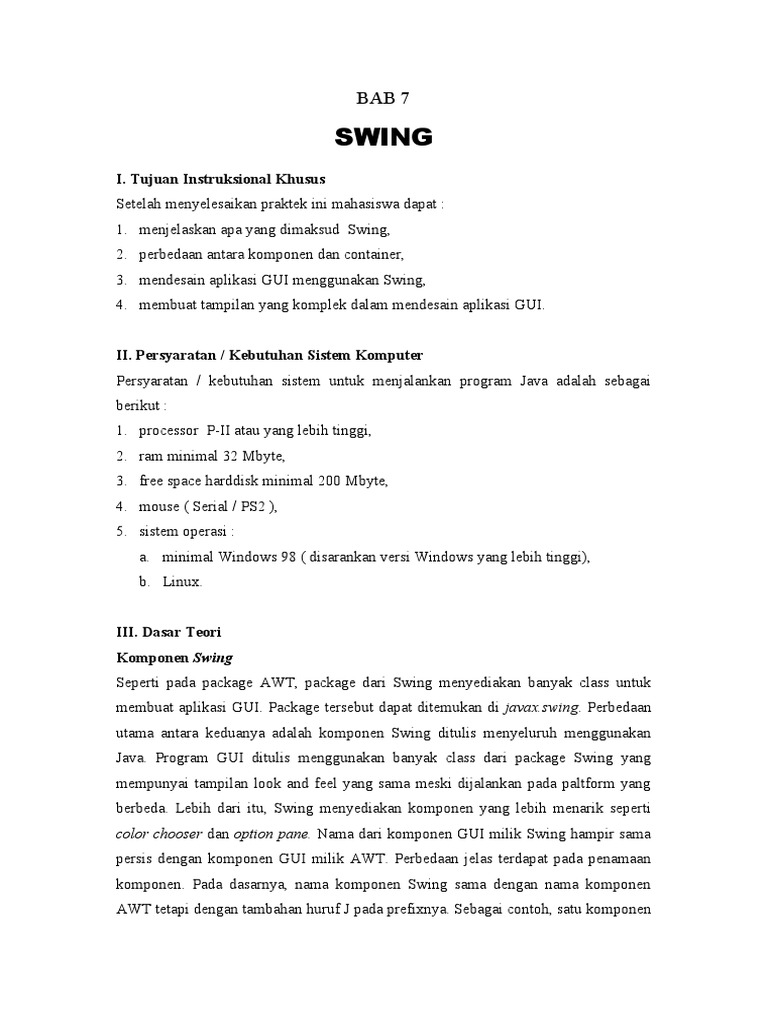 1. menjelaskan apa yang dimaksud Swing,