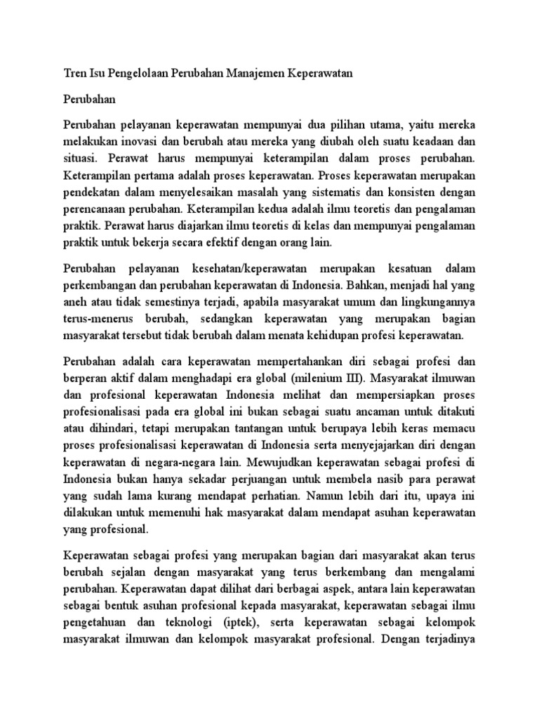 Tren Isu Pengelolaan Perubahan Manajemen Keperawatan
