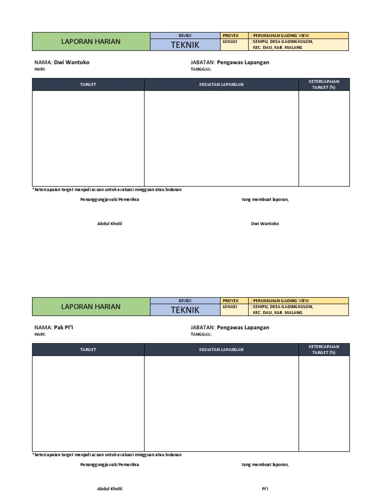 NAMA: Dwi Wantoko JABATAN: Pengawas Lapangan
