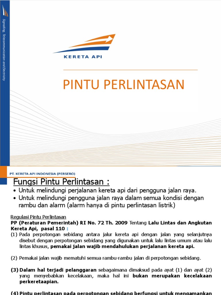 lintas khusus, pemakai jalan wajib mendahulukan perjalanan kereta api.