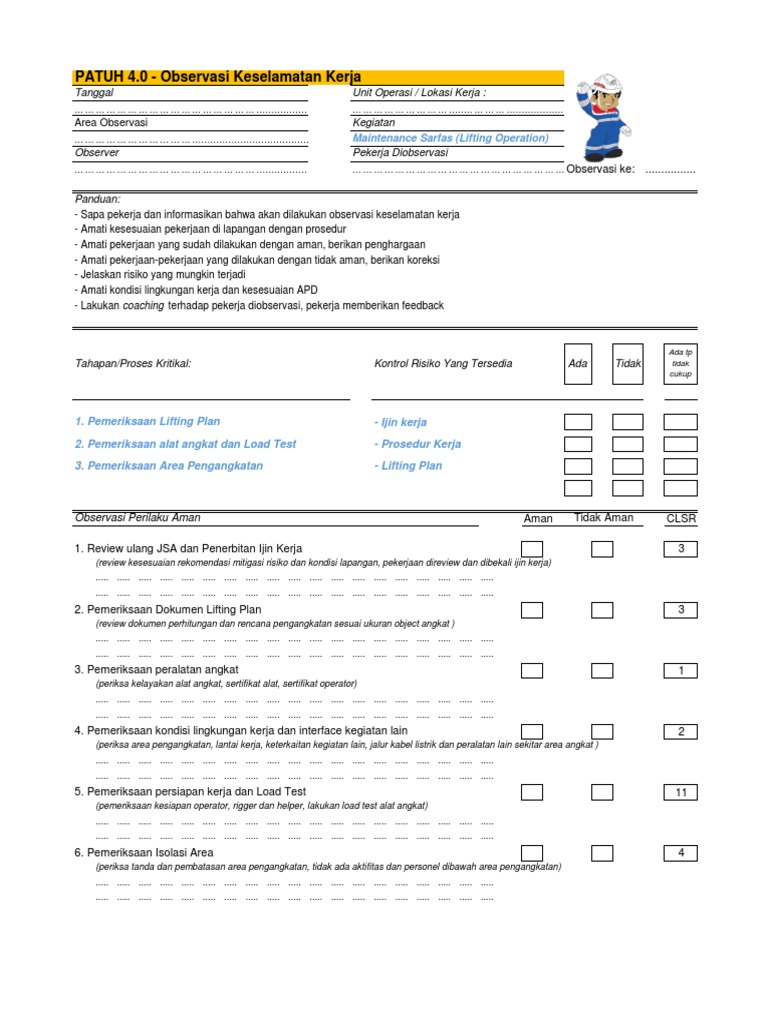 Observasi Perilaku Aman Aman Tidak Aman CLSR