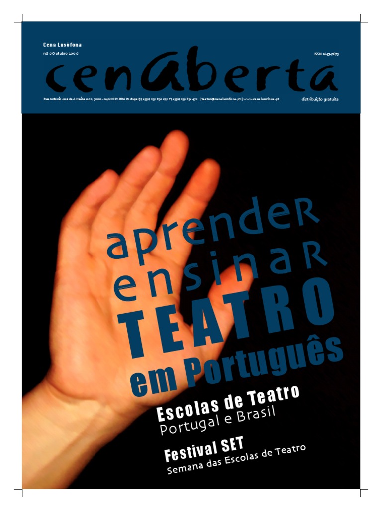 gráfica Ana RosaAssunção | ISSN 1645-9873 | N.º 6 distribuição gratuita | Tiragem 1500 exemplares | ImpressãoTipografia FIG | Propriedade > Cena Lusófona . Associação Portuguesa para o Intercâmbio Teatral, Rua António José de Almeida, n.º 2, 3000 - 040 COIMBRA, Portugal | Tel. (+351) 239 836 679 | Fax (+351) 239 836 476 teatro@cenalusofona.pt www.cenalusofona.pt