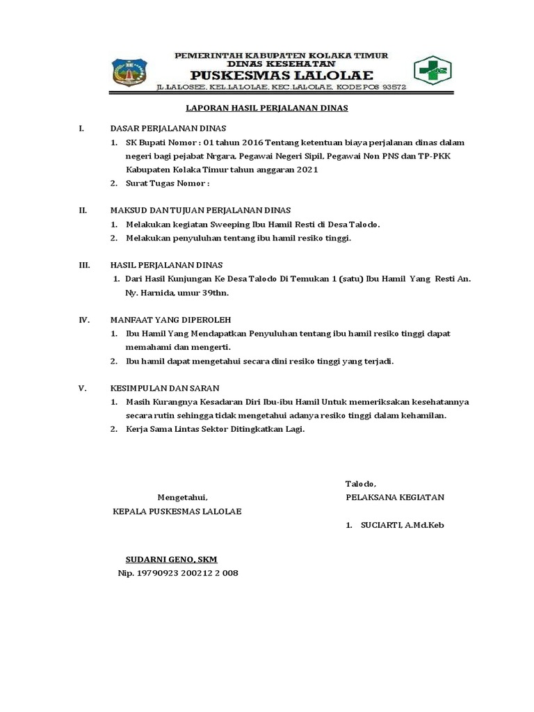 LAPORAN HASIL PERJALANAN DINAS