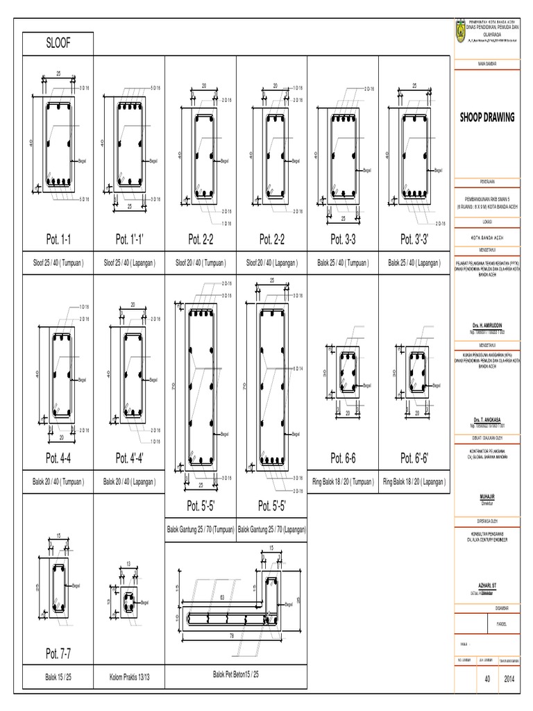 Sloof 25 / 40 ( Tumpuan ) Sloof 25 / 40 ( Lapangan ) Sloof 20 / 40 ( Tumpuan ) Sloof 20 / 40 ( Lapangan ) Balok 25 / 40 ( Tumpuan ) Balok 25 / 40 ( Lapangan ) PEJABAT PELAKSANA TEKNIS KEGIATAN (PPTK)