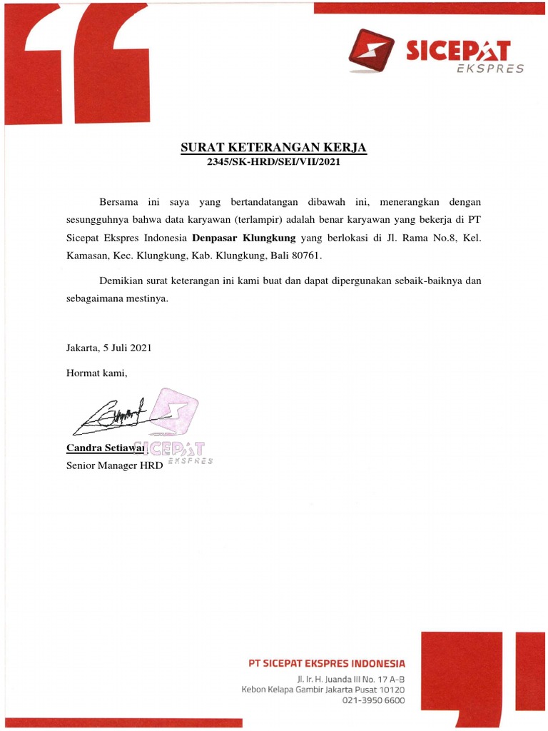 SURAT KETERANGAN KERJA