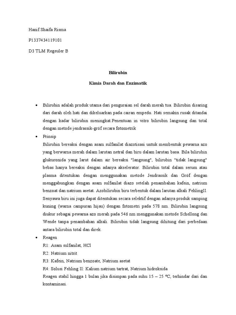bebas hanya bereaksi dengan adanya akselerator. Bilirubin total dalam serum atau