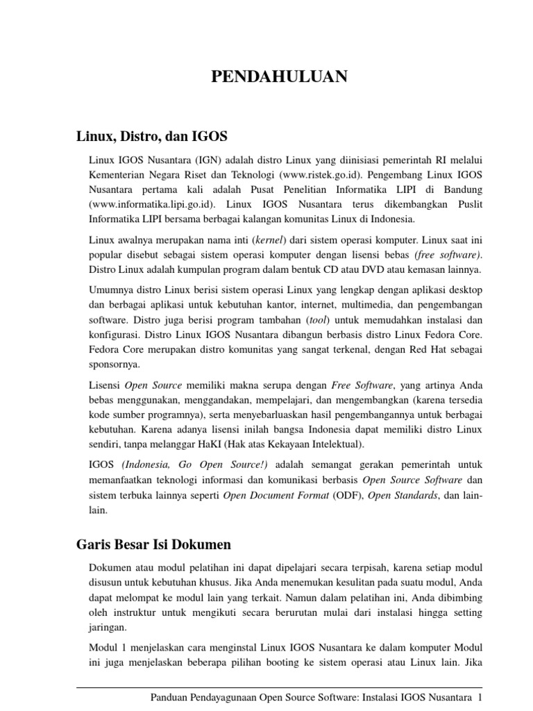 Modul 1 menjelaskan cara menginstal Linux IGOS Nusantara ke dalam komputer Modul