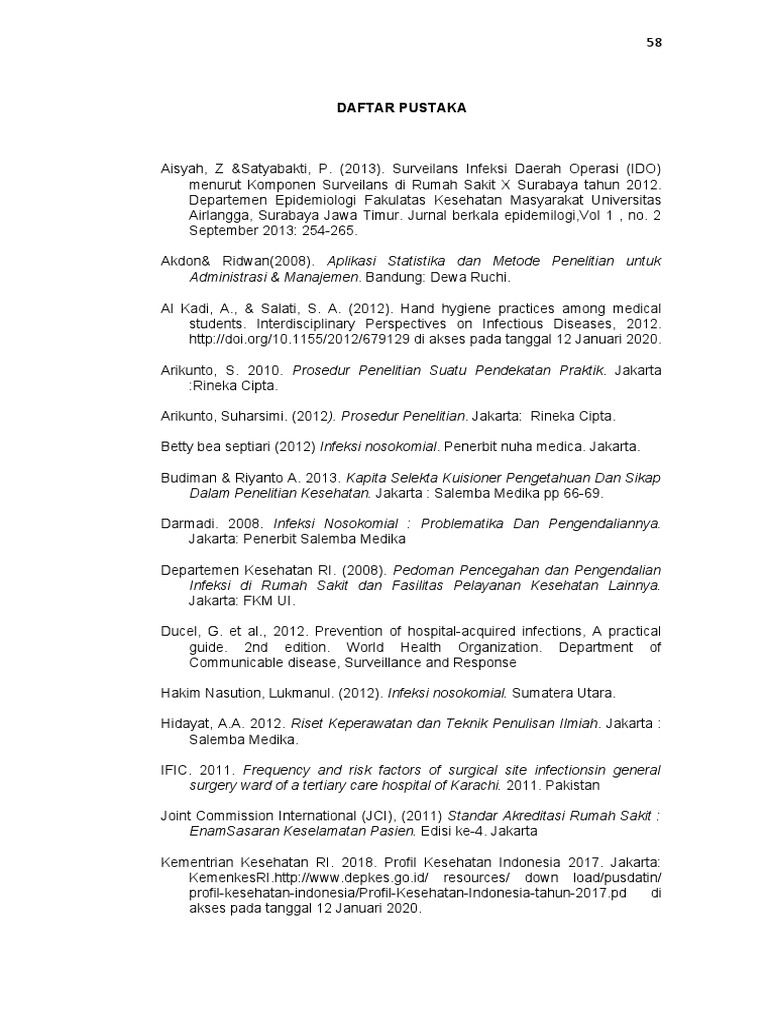 Betty bea septiari (2012) Infeksi nosokomial. Penerbit nuha medica. Jakarta.