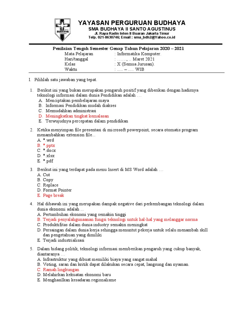 Penilaian Tengah Semester Genap Tahun Pelajaran 2020 – 2021