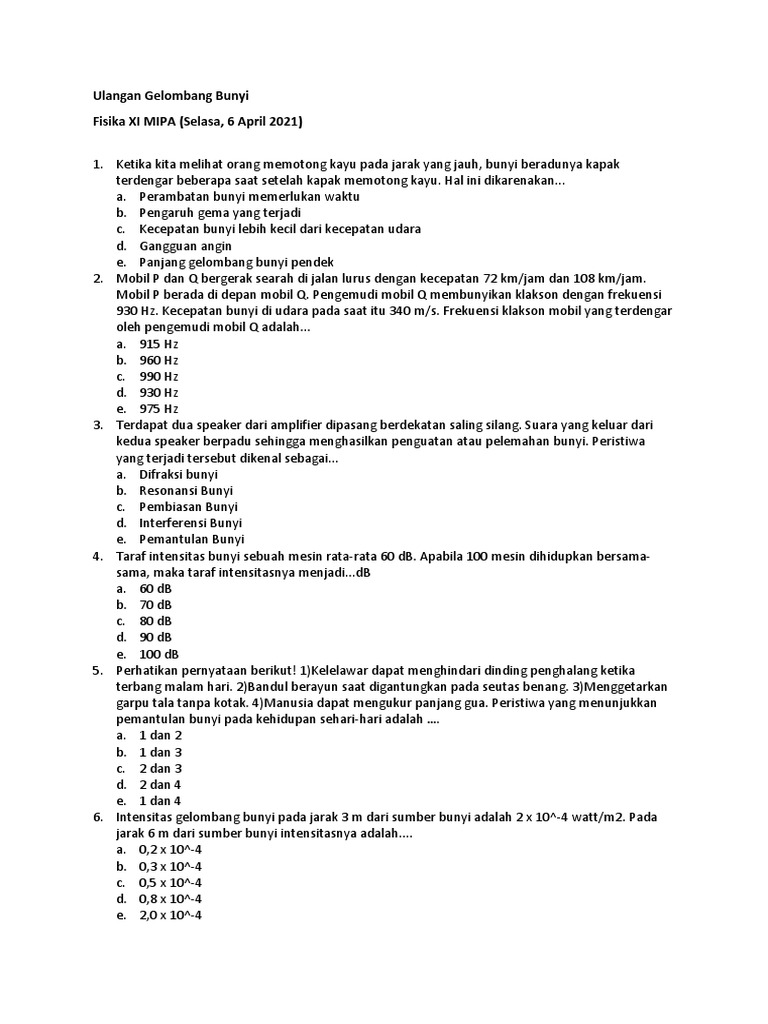 10. Sebuah sumber gelombang bunyi dengan daya 65 W memancarkan gelombang ke medium