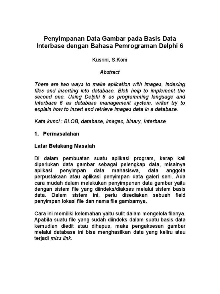 data. Dalam Interbase, data gambar dapat disimpan dalam