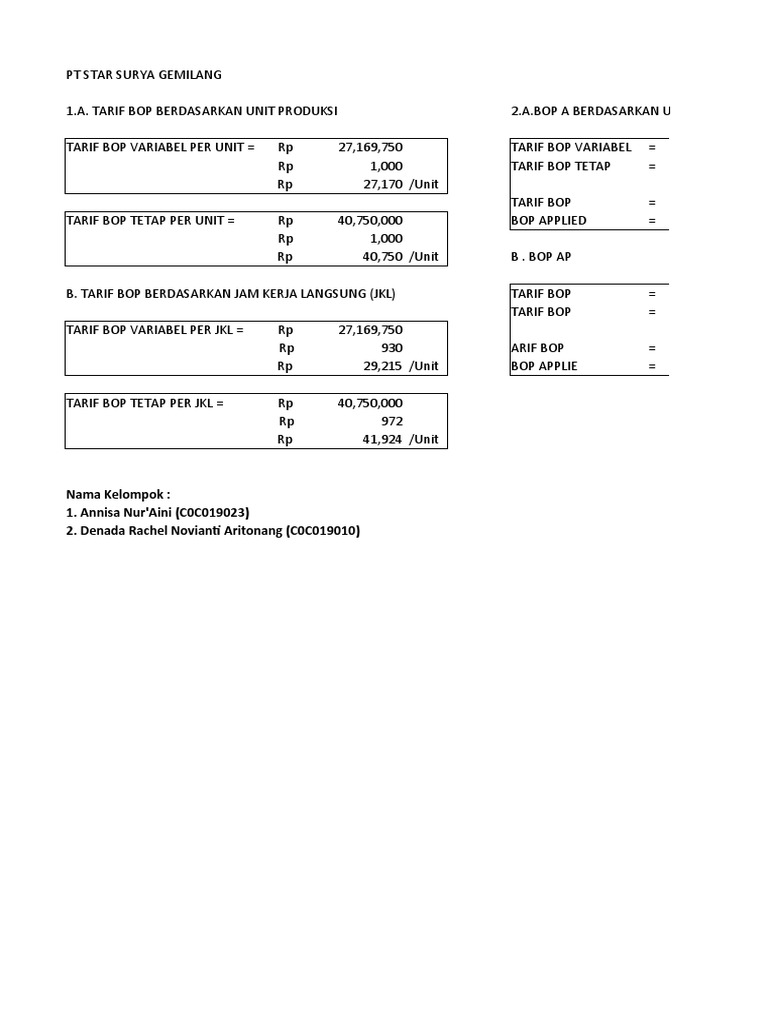 TARIF BOP VARIABEL PER UNIT = Rp 27,169,750 TARIF BOP VARIABEL =