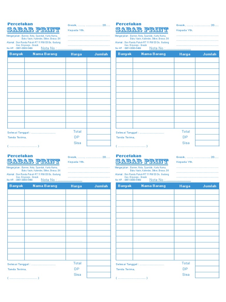 No HP. : 0851-0083-5489 Nota No : ....................... No HP. : 0851-0083-5489 Nota No : .......................