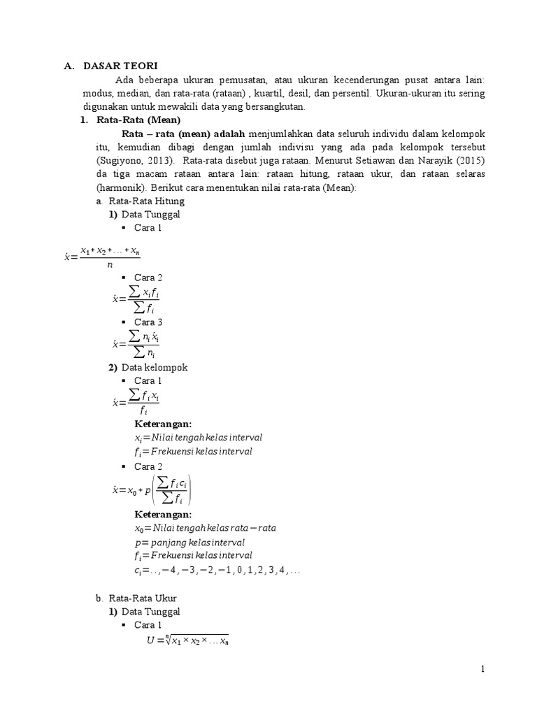 (harmonik). Berikut cara menentukan nilai rata-rata (Mean):