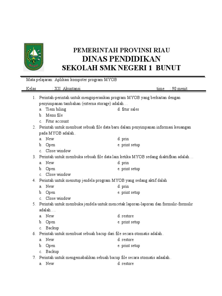 Mata pelajaran: Aplikasi kompoter program MYOB