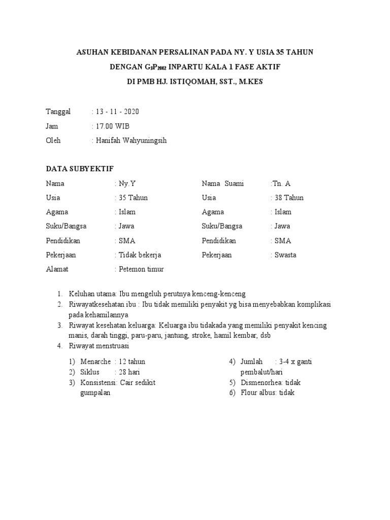 1. Keluhan utama: Ibu mengeluh perutnya kenceng-kenceng