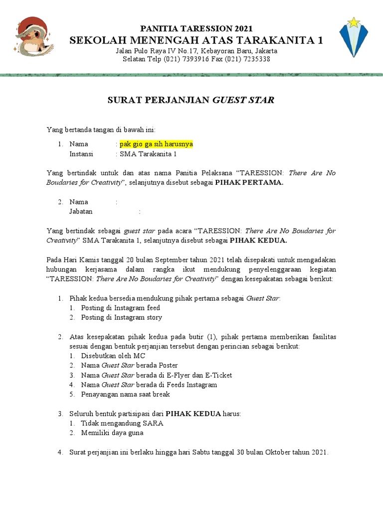 SURAT PERJANJIAN GUEST STAR