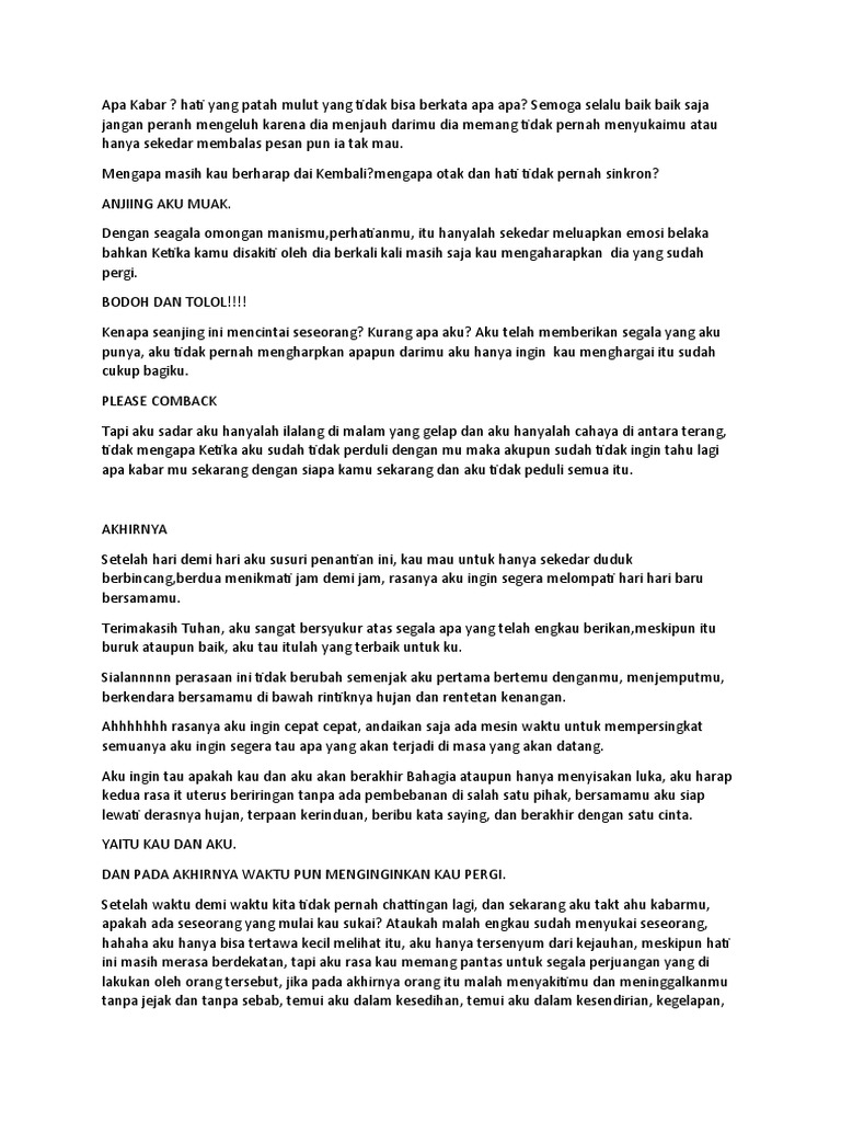 demikian sendiri entah kaupun merasakanya namun terlalu malu untuk mengucapkan hal tersebut.