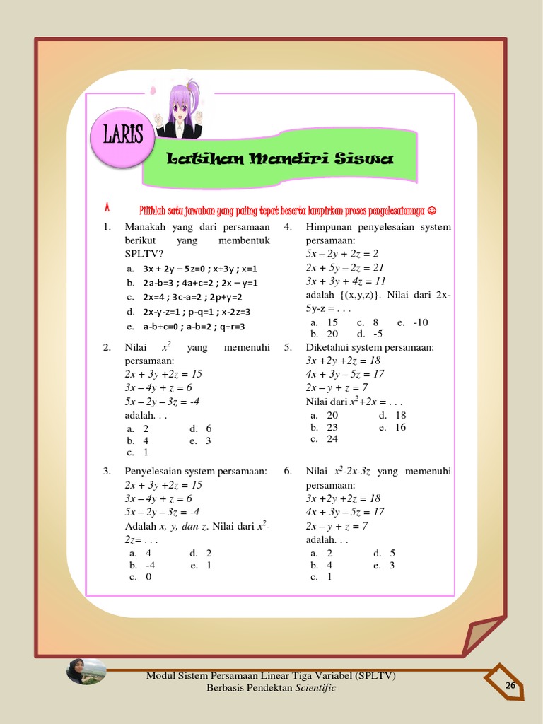Modul Sistem Persamaan Linear Tiga Variabel (SPLTV)