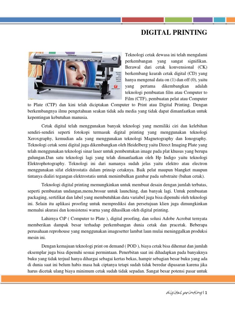 benang merah dari istilah digital printing, dimana penggunaan file komputer dan komputer