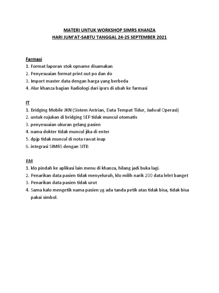 MATERI UNTUK WORKSHOP SIMRS KHANZA