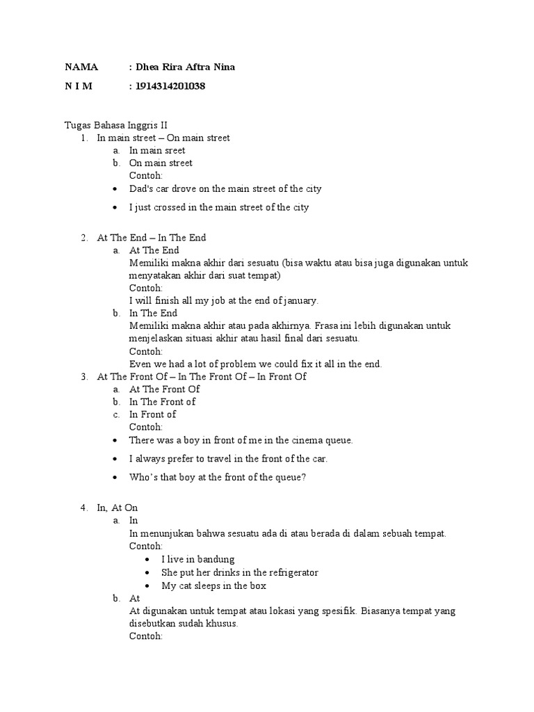 At digunakan untuk tempat atau lokasi yang spesifik. Biasanya tempat yang