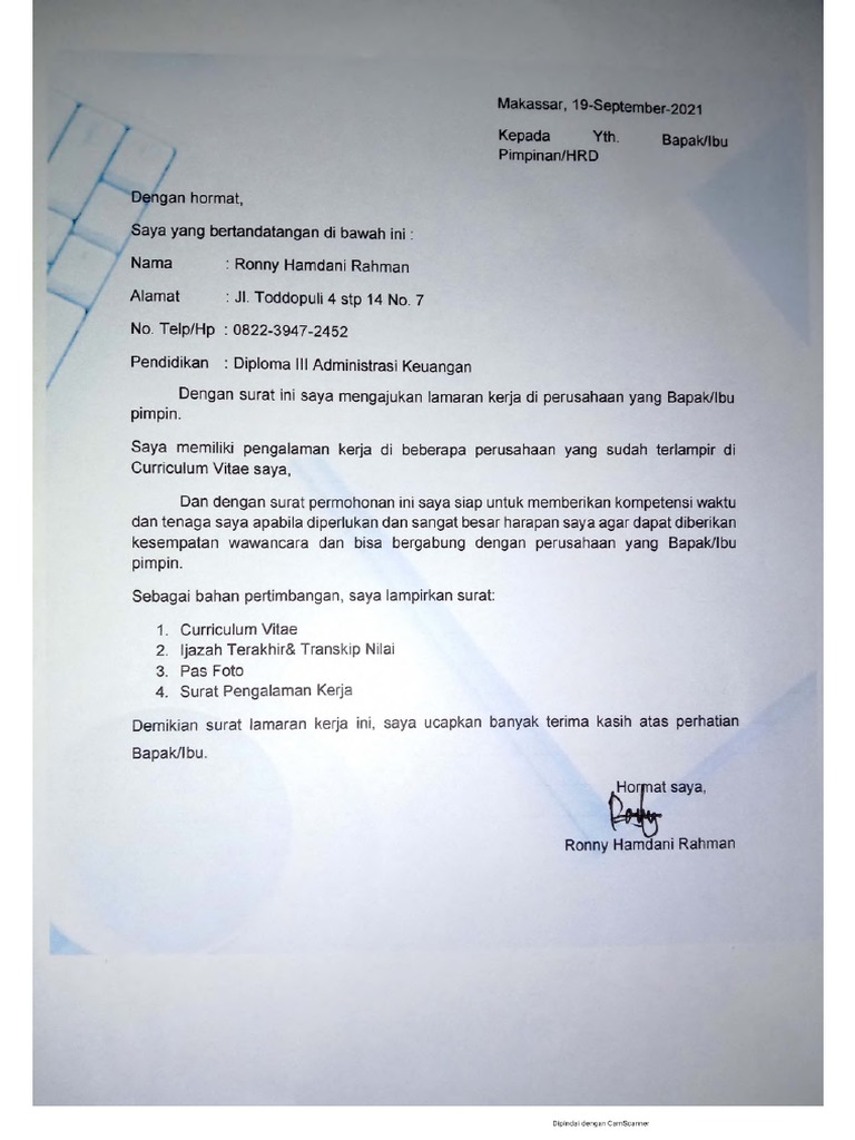 Demikian surat lamaran kerja ini, saya ucapkan banyak terima kasin atas perhatian