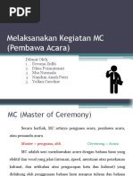 MC (Master of Ceremony) adalah orang yang bertugas mengatur jalannya acara dalam