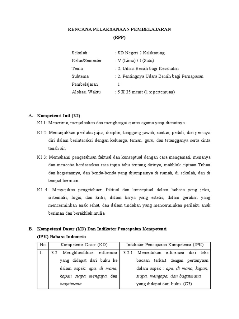 yang akan dibelajarkan yaitu “Udara Bersih bagi