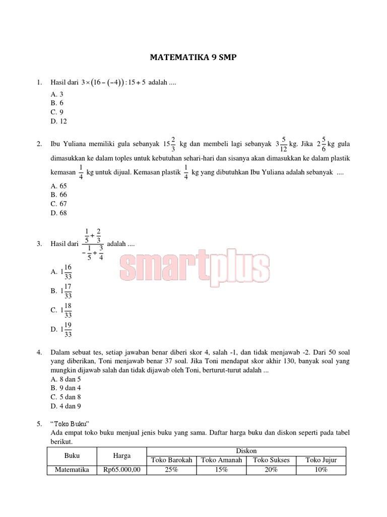 Matematika Rp65.000,00 25% 15% 20% 10%