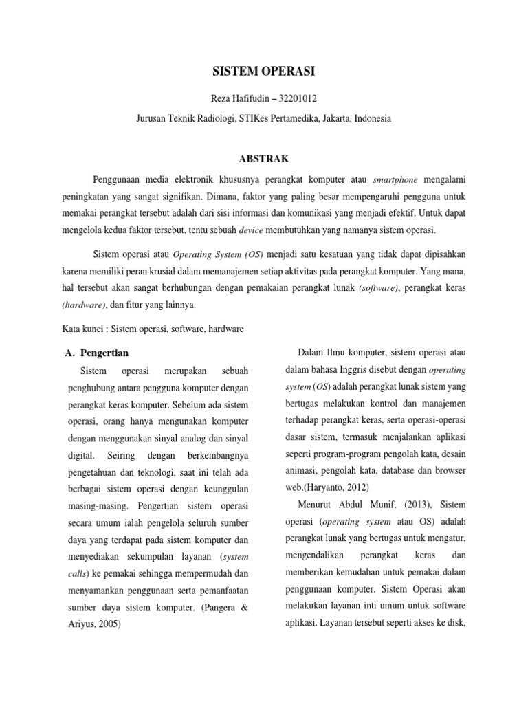 Kata kunci : Sistem operasi, software, hardware