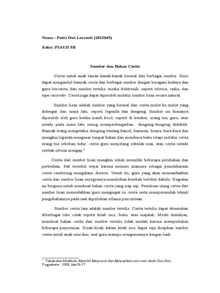 Sumber dan Bahan Cerita