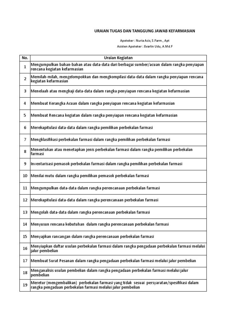 URAIAN TUGAS DAN TANGGUNG JAWAB KEFARMASIAN