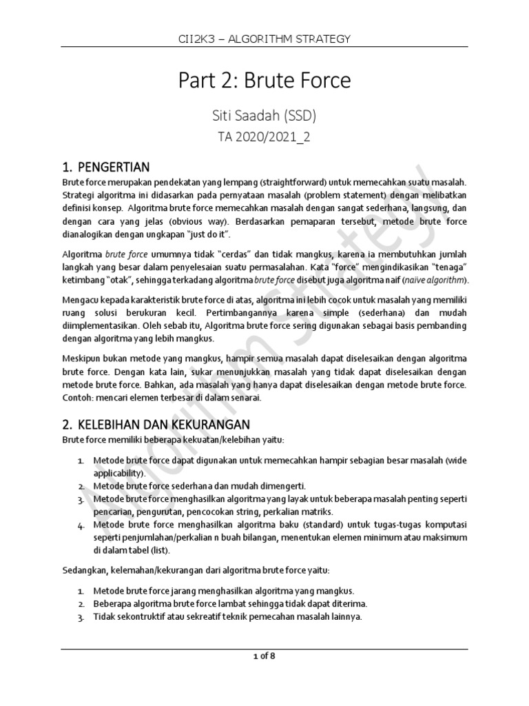 Penyelesaian permasalahan menggunakan strategi brute force dibagi ke dalam 3 (tiga) bentuk yaitu