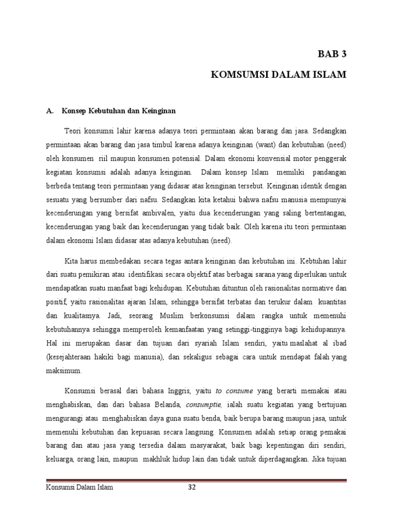 kegiatan konsumsi adalah adanya keinginan. Dalam konsep Islam memiliki pandangan