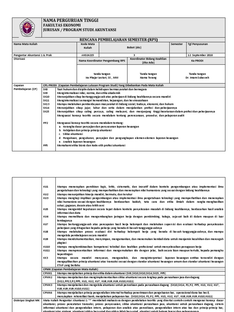 RPS Pengantar Akuntansi 1 dan Praktek