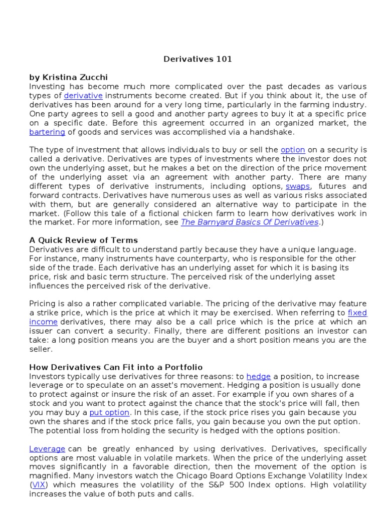 market. (Follow this tale of a fictional chicken farm to learn how derivatives work in