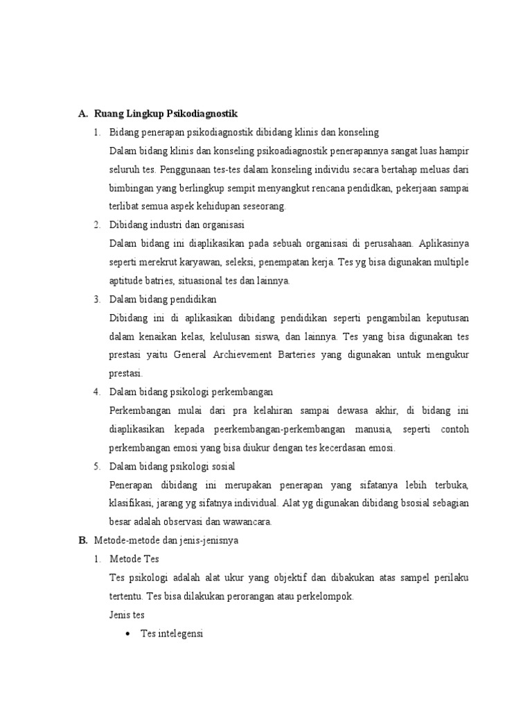 1. Bidang penerapan psikodiagnostik dibidang klinis dan konseling