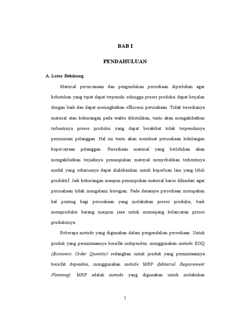 Sistematika penulisan laporan penelitian tentang metode MRP ini adalah,