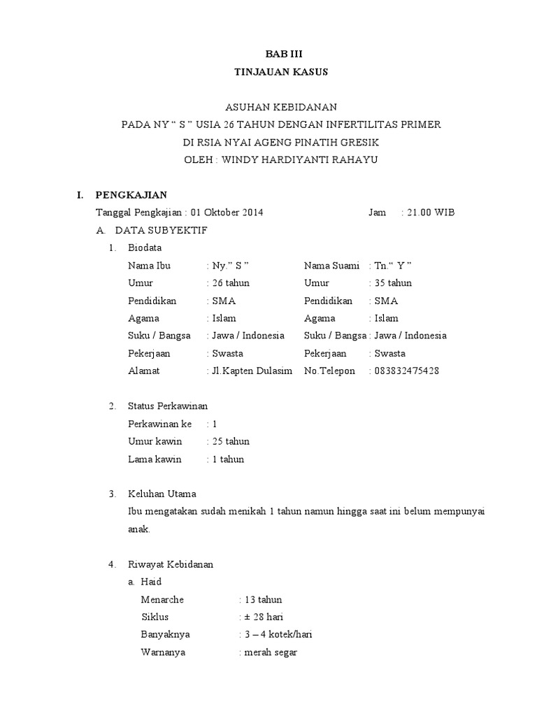 Diagnosa : Ny. “ S ” dengan Infertilitas Primer
